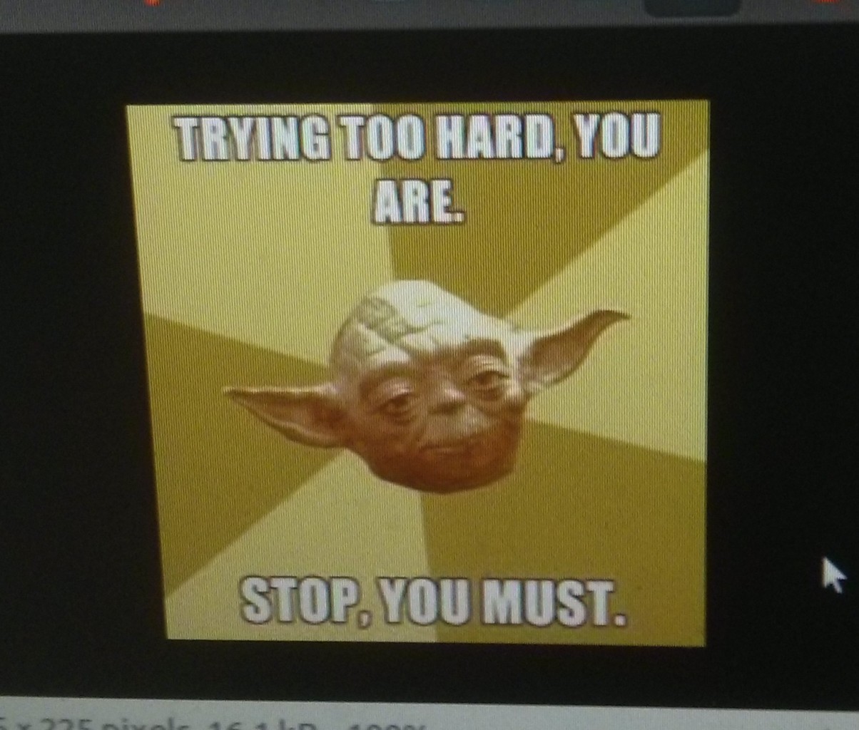 Many of us who have a tendency towards myopia are over-doers. If a little is good, a lot must be great! “Trying too hard” makes no sense to us — how can you get anything done if you don’t try?